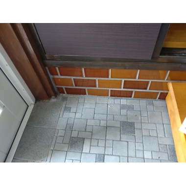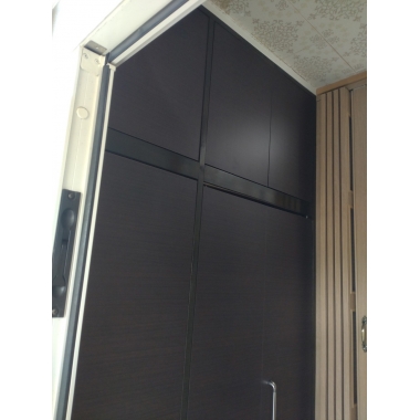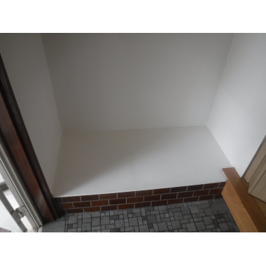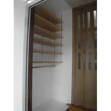 玄関収納の腐敗があったため防腐施工と扉を撤去し新しく棚を設置しました。
